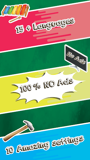 Preschool/School children can use the landscape mode of the device to access a multiple-choice game, which challenges them to select the right name of the illustrated animal, instrument, vehicle, or object.
