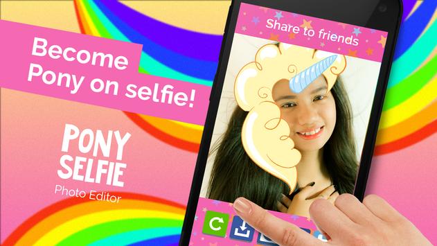 Pony Selfie: Photo Editor is a picture editor! Make yourself a pony on selfie photo, apply magic effects and add miracle filters to have a rainbow in hair or to have a magic horn on your forehead! Perform colourful photo edition to have wonder selfie images with little ponies! Interested in horses? Like to ride a pony? Love fairy tale heroes? Make a selfie photo as beautiful as you were one! Edit selfie pictures of friends and classmates and make little nice ponies for your girlfriends!
