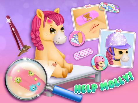 Take care of the cute Pony Sisters in the best pet hospital. Treat Molly's wounds, help Rainbow fight the flu, cure Rosie's pony pox and fix Britney's broken leg!