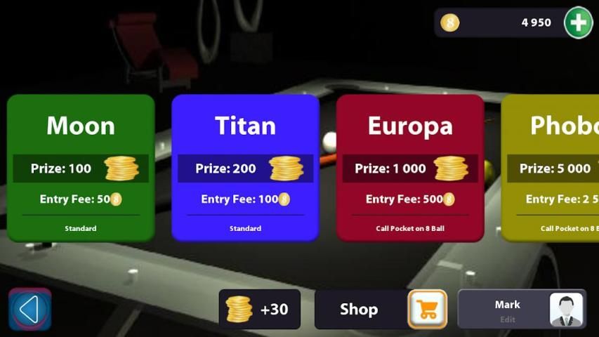 you can also purchase different cues with paying coins are payable in shop.