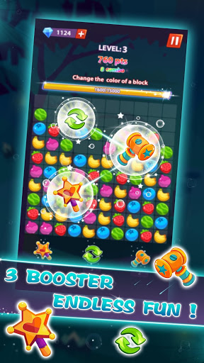 Just tap two or more block of the same color candy, Crush enough blocks to win before you run out of moves, Each stage has target points to proceed to the next stage.