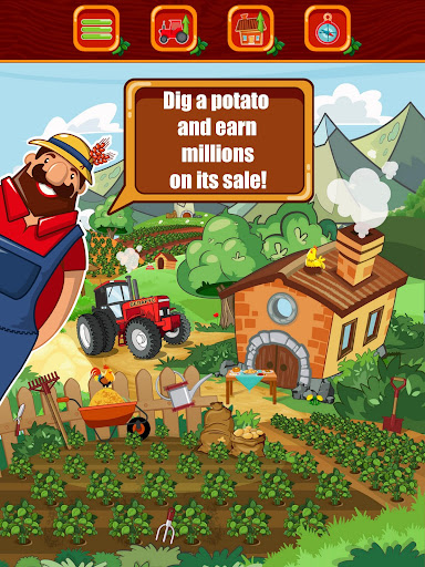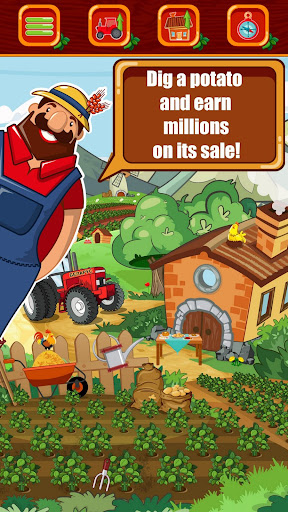 And between these stages a whole life. Show yourself as a digger, dig a potato, sell it on the market and get money. To dig a potato bush you just need to click or tap on the screen. Dig as if there is oil under the ground and you want to be like an oil tycoon!