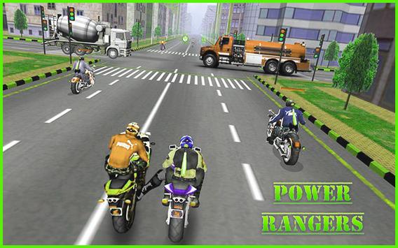 welcome to the : Power Rangers . the Racing Moto. pawer ranger is a fast paced racing game. You never dare drive so fast in the real world! Control your moto with the hero of power ranchers incredible fast speed during traffic rush time! Also enjoy beautiful view during the journey with power rages , in - desert, city, bridge, jungle and forest!
