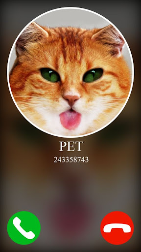 fake incoming call pet game. simulate pet incoming fake call with photos and sounds. parrot, cat and dog.