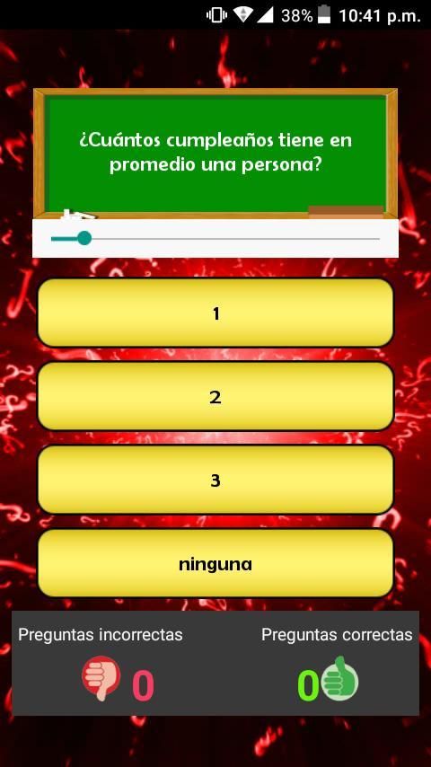 Cuentas con un tiempo límite de 40 segundos en los cuales deberás responder. No tendrás complicaciones ya que cuenta con un diseño excelente y llamativo para que puedas llevar acabo este reto de todas las preguntas con toda tranquilidad.