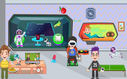 Pretend to be as nerdy student who are picked from small town and now they get accessories and props of future tech. You can pretend and build space shuttle so you can fly towards Mars or space station in orbit around the planet earth. Interactive game play with both fun and creative gaming experience. It gives everything what you love like tv lounge, play area, study area, gravity room, office and more.