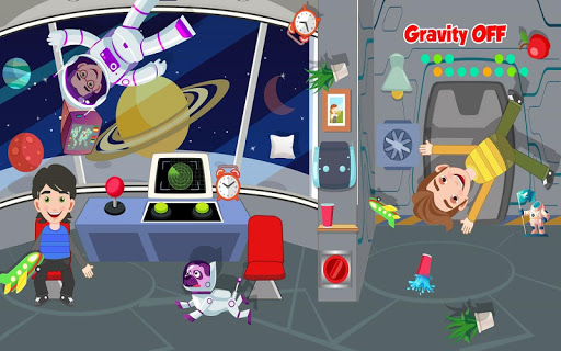 How about pretend to be an astronaut and exploring space station and galaxy life. Pretend to work on a space station interact with earth monitoring room, rocket station, gravity room, play room and more. Eat food, collect items in space, dress up as astronaut and many more fun activities. It’s like digital story book where you can Pretend and play as astronaut and create his own story with imagination.