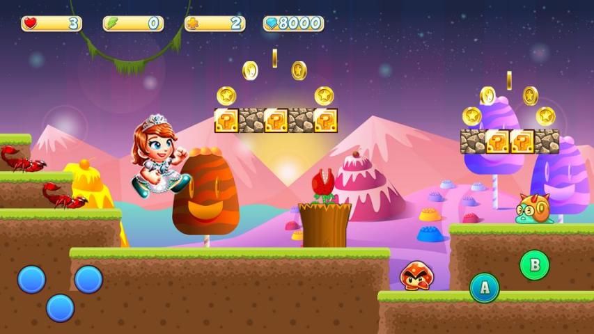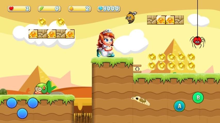 adventure princess run combines the classical gameplay of retro games and some new skills of the mobile gameplay with Awesome levels that made for you ; this is one of the princess games that will rock you through 80 levels of challenging smashing , running , jumping and shooting In this Super Princess World.