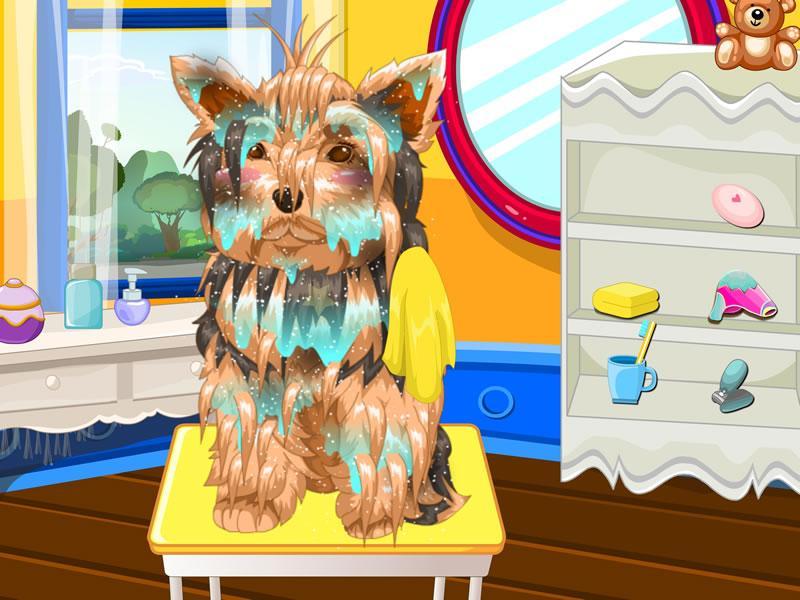Cute baby dog still don't know how to take care of yourself, need someone to take care of it, help it take a bath, make it happy. It should also help make-up and hair, put on beautiful clothes, dress it up.