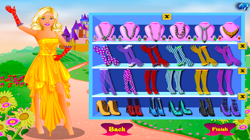 After you finish with the make-up step, move to our princess wardrobe and choose the one you think fits better to her…of course it will be a big, glamorous princess dress. There is no outfit without accessories and the perfect pair of shoes so find all these in the next step. Wish you good luck playing our dress up princess game.