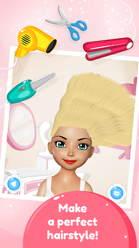 Every girl wants to have perfect hair. You can start by washing and blow-drying your princess's hair. If you cut or thin out her hair, you will be able to use magic elixir. You have to see this for yourself. Feel free to style her hair any way you want. You can tint it and create a luxuriant, thick, curly, short, dishevelled, straight or ruffled hairstyle.