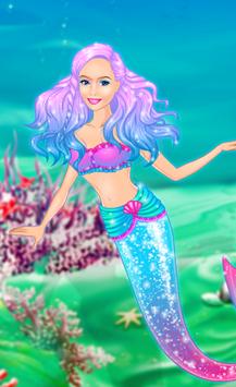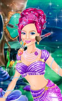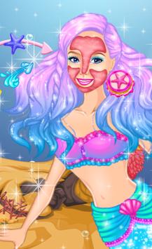 Your mermaid salon uses only natural and organic treatments that would refresh her look immediately. Apply a thin layer of shampoo and rub until the foam cover her hair. Then clear it and add some conditioner to make her hairstyle be shiny. Her face needs a moisturizing mask to keep her skin clean and fine. The next step is to deal with the make-up of this mermaid princess. Once you choose a blush the mascara and the lipstick should be easy to put on.