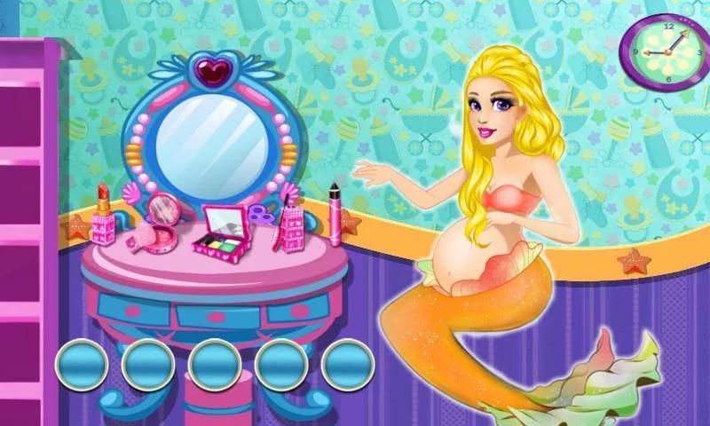 Pregnant Mermaid needs a makeover badly. Before the princess is born mermaid needs very good tailors to design her clothes and awesome make-up artists to give mommy an amazing design.