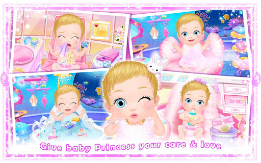 Open the game to enter the palace. Wow, the little beauty is up. Greet her with a big smile and do her morning routine: comb her hair, change the diaper, and feed her with some milk... Oh, look at her. The milk is dribbling right out of her mouth, let's gently wipe the milk away. The little rosy cheek wants to go out for a picnic, so she needs you to give her some advice on what to wear today. A cute pink dress, a tiny fancy tiara, and a cool sunglass will be amazing. Okay, put her into the stroller and…Oh wait, let's do a little something to make the stroller even cuter. You know she will be more than happy to see her stroller decked out. Phewww~ everything is settled. Let's go and enjoy the outdoor time! Don't forget to give her a regular check-up when she's back from the trip: measure the pressure, give her an injection…Aww, she's freaking out getting a shot. Don't worry, a cool toy room will definitely blow her mind and ease the pain. So why wait? Let's take the little darling to the toy room and have fun with her.