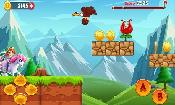 Help this Princess Sofia jump over the jungle and up to collect the magic apples and avoid enemies throughout an adventure journey through the levels.