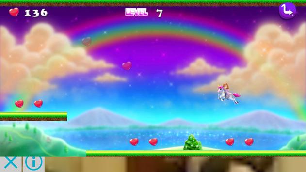 Help this Princess Sofia jump over the jungle with horse and up to collect the magic apples and avoid enemies throughout an adventure journey through the levels.