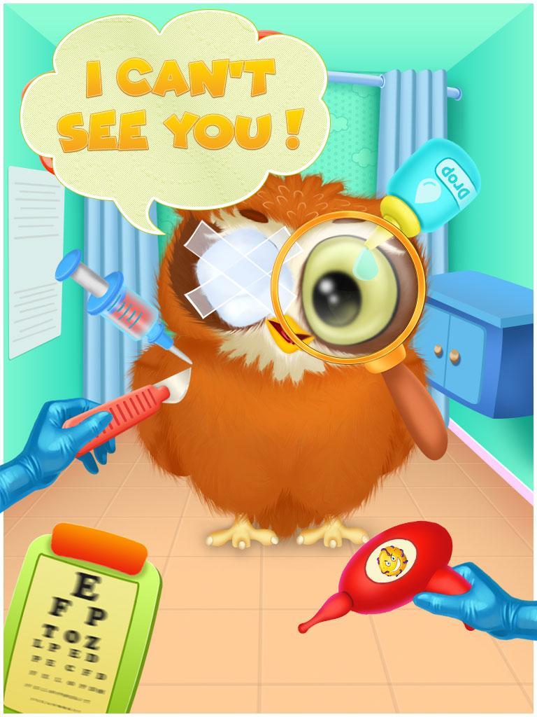 Learn how to give first aid treatment to cute little pet and use injection,stethoscope like pet vet doctor instruments.