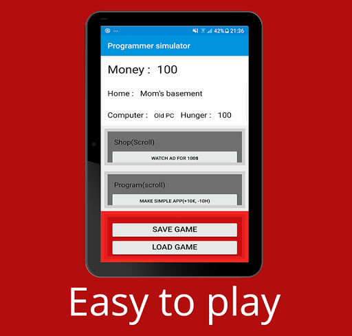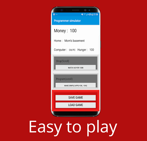 In this game you are a beginner programmer That needs to move from his mom basement and make a successful career in programing. In this game you evolve from making simple apps to working with companies like Ifruit and BookFace. Also this app is only 35 Kb.