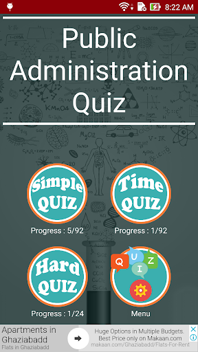Using this Public Administration Quiz game learn, spend some free time with it, have fun playing it. It has 3 types which is simple quiz, time quiz and hard quiz.