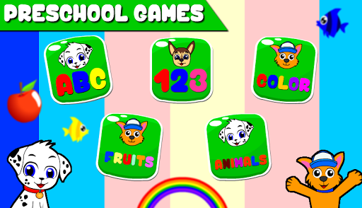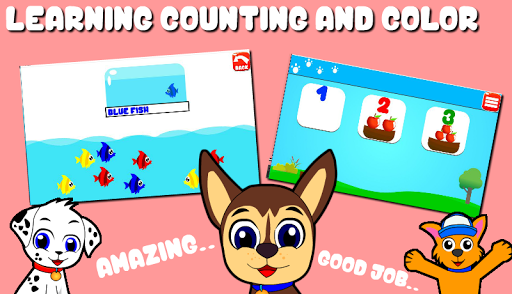 This game will teach your child to learn letters, numbers, colors, animals , fruits and many more !!! play and learning with cute puppy, you can patrol in sea, paw the fish, using train ABC, play jigsaw puzzles, play puzzle, play match number, balloon pop, bubble pop and many more !!!