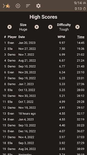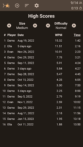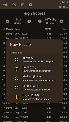 ★ 5 word search grid sizes and 5 game difficulty levels to suit all phones and tablets and all players.