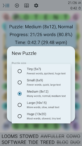 ★ Unlimited word search puzzle games generated at lightning speed from a list of 77,000 English words.