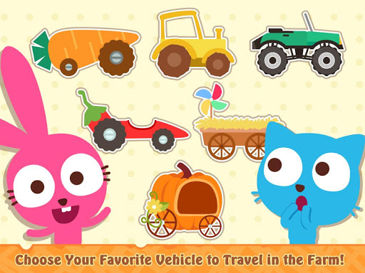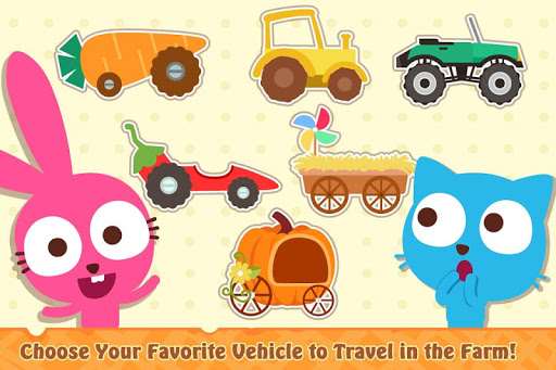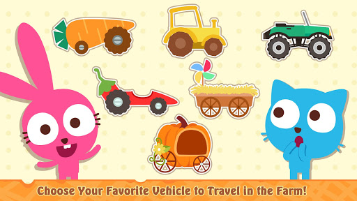 Choose your favorite character and select a cool car to run though the farm land! Become an explorer and dash all the way into the river, on the bridge and collect magic crystal carrots! You can also enter the buildings along the road to play mini puzzle games! Your progress will be saved and you can choose to start a new game from the top or continue your previous game!