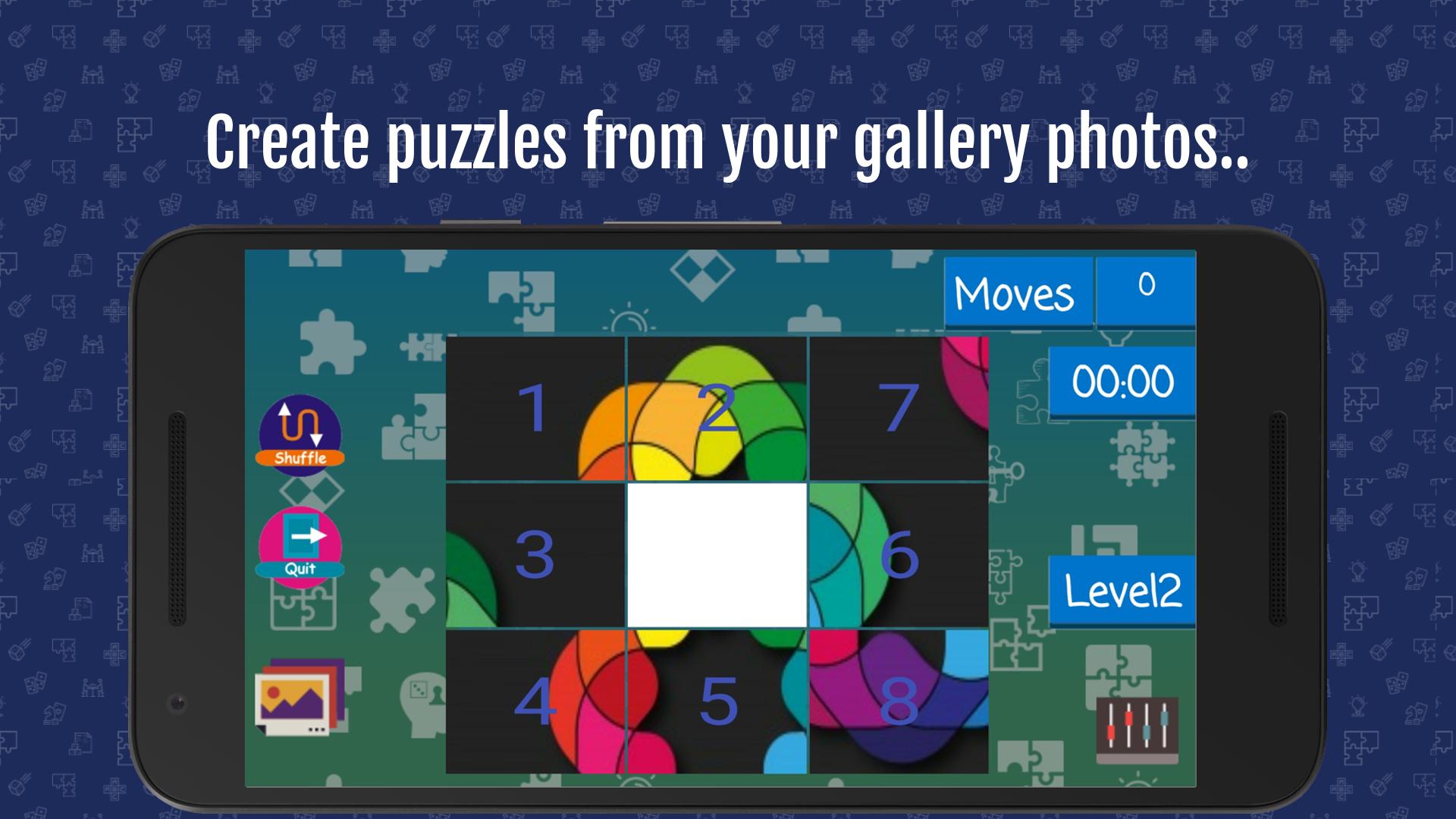 In picture puzzle , you can shuffle your gallery pictures as puzzle and then you should solve it.