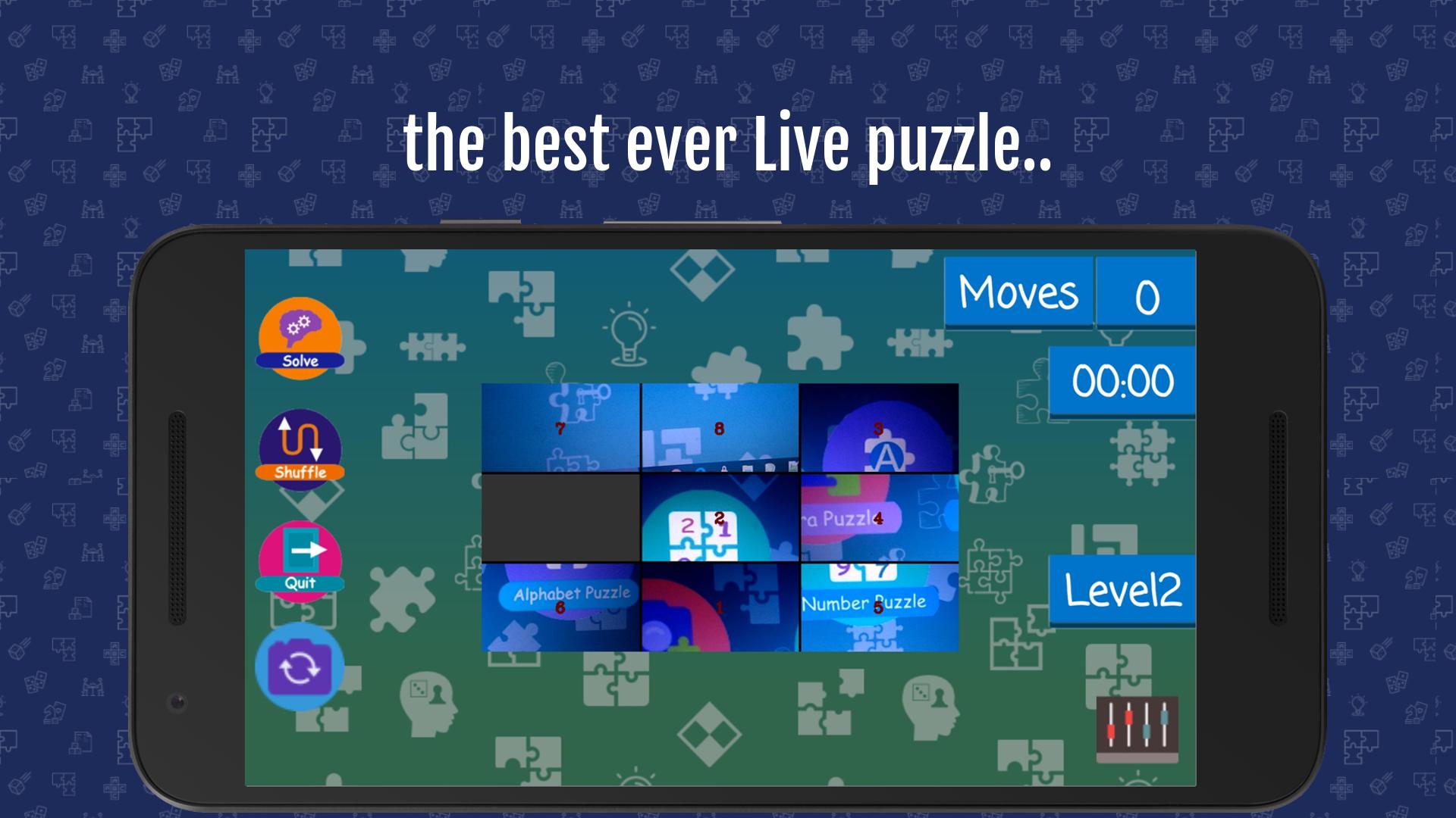 A live camera puzzle means you should solve camera preview which is shuffled as puzzle board. After solve puzzle you will see normal camera preview.