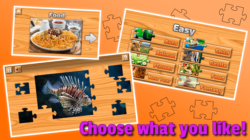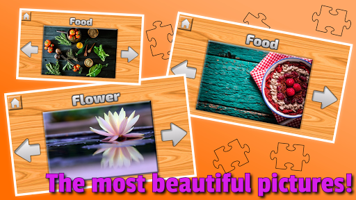 Three levels of difficulty, variety of games at a time without it. You can collect any picture of any category. Tip for pictures. Take a piece and put it in its place, make a picture!