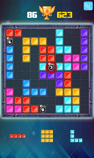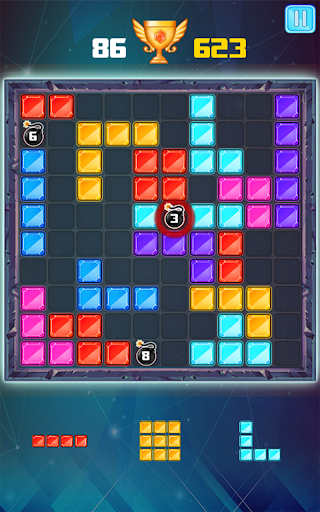 • Place the blocks pieces into board. Once you fill in a vertical or horizontal line, it will disappear, freeing up space for new pieces.