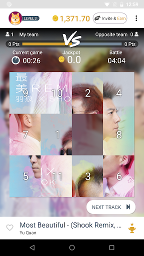 Get free 1,000 credits for free when you register. Train yourself in solo mode. Every solo game needs an investment of 10 credits. Play 100 games for free. If 100 games is not enough, invite 1 friend to receive another package of 1,000 free credits. Invite more friends and you can enjoy more games, plus everytime you play you support artists and their music. The sky is the limit.