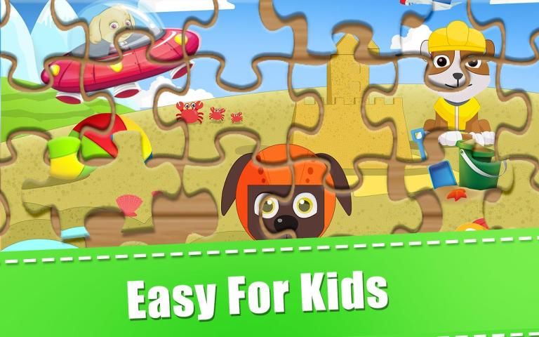 Super Puzzle Paw Kids works almost like real jigsaw puzzles for kids. Once you pick a piece it stays on the board even if you place it incorrectly, and you can nudge pieces around until it snaps to the right slot.
