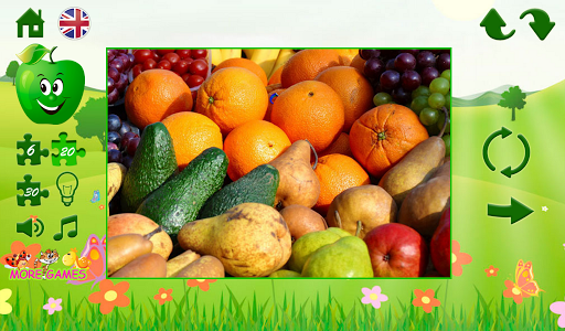 In puzzles ""Fruit"" you need to collect 45 pictures on which fruit are represented. It is fascinating, especially, when the mode of game can be complicated, having chosen a session not on 6 pieces, and puzzles on 20 and 30 small pieces of one big image.