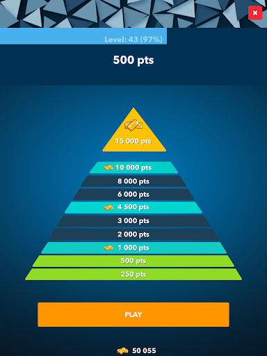 Pyramid Quiz it's such an addictive game, that you'll want to play anytime, anywhere! Statistics and rankings help you to track your performance to challenge yourself to become better and better! Have fun!