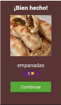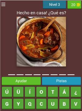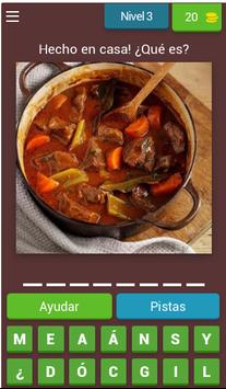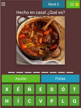 El juego incluye alimentos y comidas de muchos países y lugares, tienes que mirar las fotos y decir cómo se llama el plato o preparación, los primeros niveles son las preparaciones más conocidas, luego comienza a subir la dificultad con platos no tan conocidos que pondrán a prueba tus conocimientos culinarios.