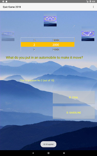 Lifeline 1 - 50:50. 2 answers are eliminated leaving 1 correct and incorrect answer.
