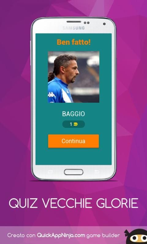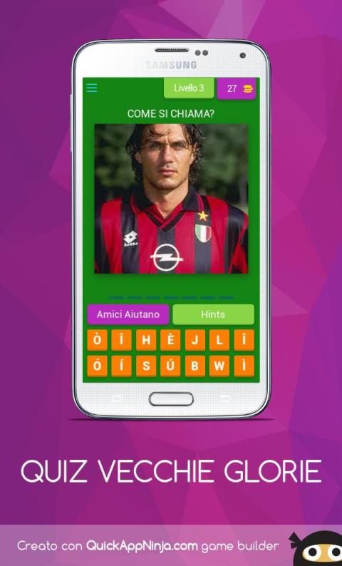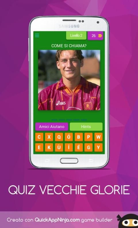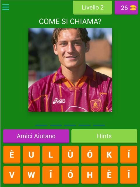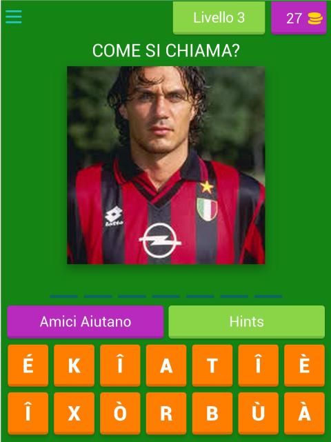 L’App creata per gli amanti del calcio e suddivisa su 48 livelli dove troverete immagini di vecchie glorie del calcio che hanno fatto la storia del calcio italiano dagli anni 90 al 2000. Il gioco e facile, bisogna associare per ogni immagine il nome del calciatore che vi compare. Vi consiglio questa app perche e veramente come tornare indietro con il tempo.