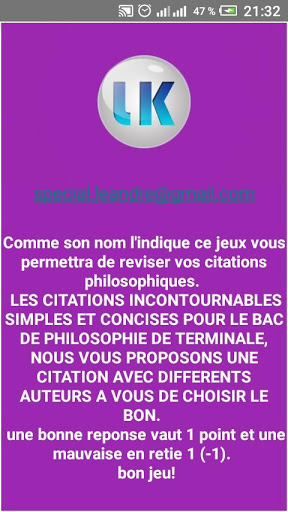 Enfin,tous les amoureux du savoir et toute personne désireuse d'aiguiser sa connaissance en philosophie peut se procurer cette application.
