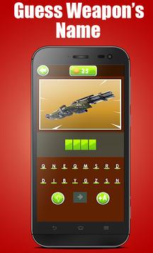 and collect more coins for have more fortnite quiz game weapons and get more challenge for know more about fortnite items(Chug Jug, Shield Potion,....),location,map questions,weapons (Shotgun,Sniper,Scar,Minigun) ninja fort royaleStats heroes, with this quiz companion you can have fun more pubg phone