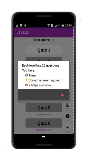 With the help of this simple quiz game application, our aim is simple to add knowledge to your brain bank and to educate our players :) and with the use of questions of different level of difficulty, it will never leave you bore anytime, any day!!