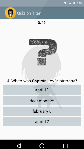 Quiz application, which determines your knowledge about Attack on Titan anime.