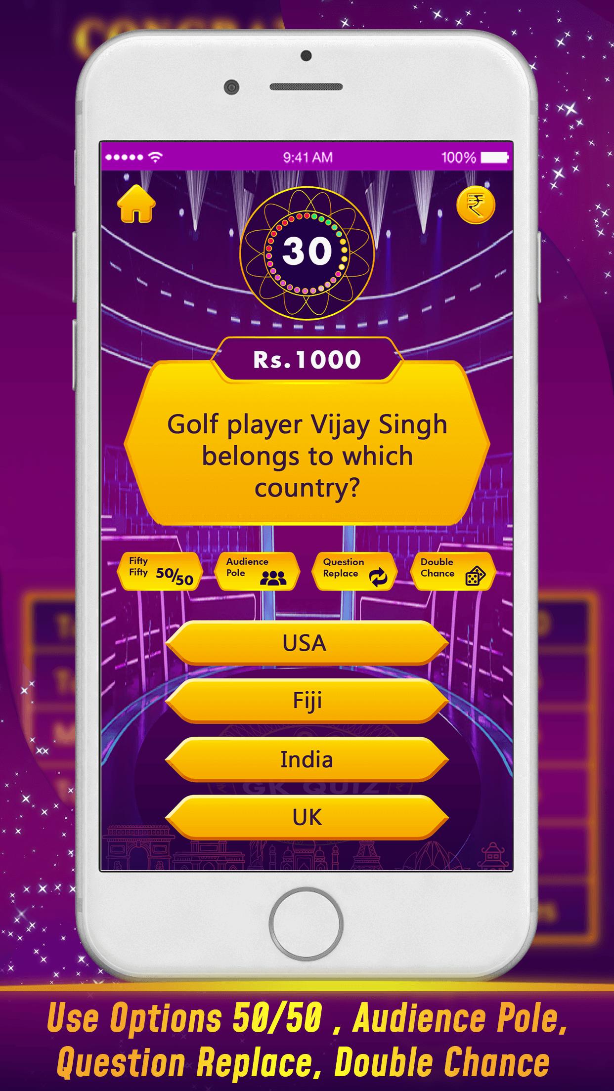 Play free questions and answers trivia quizz online and become Crorepati kbc. Gk trivia is made in india quiz game to test your general knowledge.