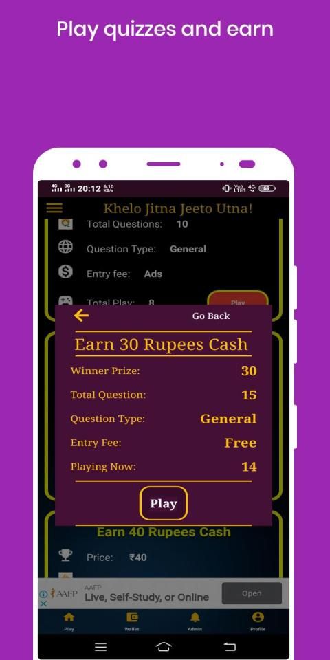 Quizer application gives you unlimited chances to play Quizes and earn money.