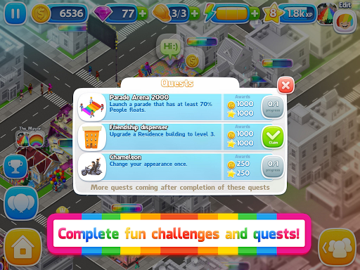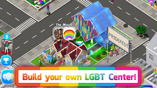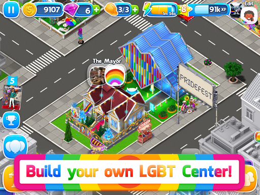 • It’s YOUR City! Upgrade your LGBT Center and turn drab gray buildings into thriving businesses and residences, bringing more income to your city, and unlocking more of the city to explore. The residents of these buildings get bored over time, so it’s up to you to run parades by them to keep the party going!