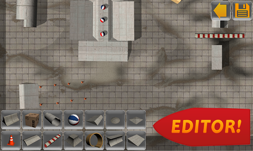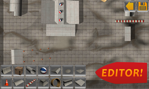 Includes editor to build your own tracks with different types of ramps, loops, cones, boxes and other obstacles!