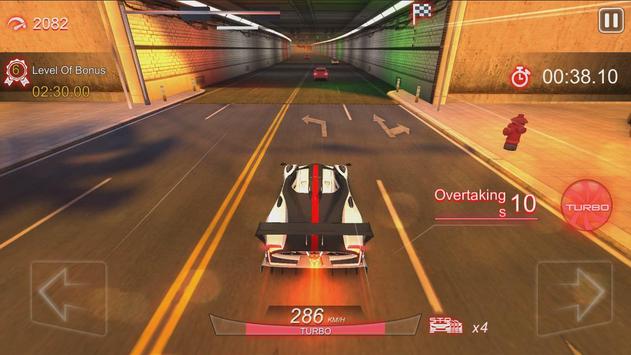 lanes to overtake constantly, get high level turbo, rush other cars to keep accelerating, complete the mission