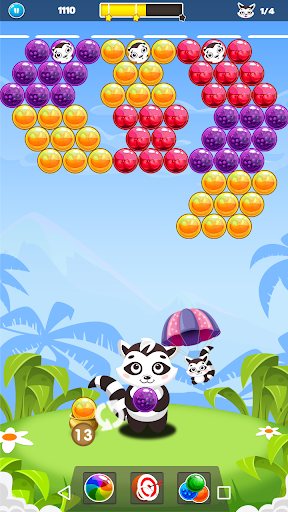 Your main goal is to bring together the bubbles that the raccoon holds in his hand so that at least 3 colors are the same. Take part in the new adventure for free, with sequentially different hands from top to bottom with increasingly difficult chapters. Each section has a limited number of bubbles given to you so you should play with quite care. Set your target and shoot right, it's that simple and fun.
