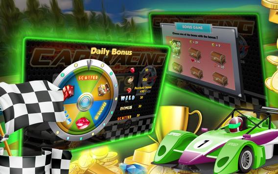 Hear the roar of the engines? Are you a car racing fan? Then you’ll realty dig Race Car Slots! It won’t cost you a cent!
