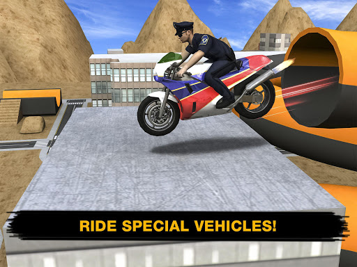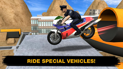 With the open world best city environment simulation like Police Bike stunt Simulator, you can drive the police bike onto stunt ramps to perform exciting, amazing stunts and build up incredible speeds with nitro boosts. If you like to go to extreme fast speeds and becoming the best police motorbike officer in the city, fighting crime and serving justice to people, then you will fall in with love Police Bike stunt Simulator!
